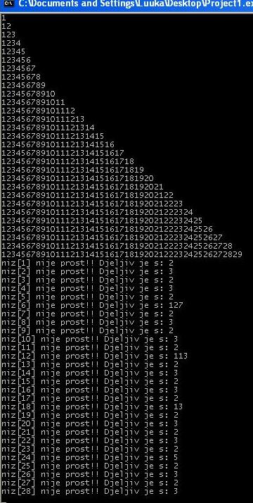 Ispada da za n=61 i n=73 dobivamo prost broj. No, to su samo kandidati za proste brojeve jer im je djeljivost testirana do 32767 (gornja granica za int). Da li netko zna dokud ide long int u c++-u?[/quote]