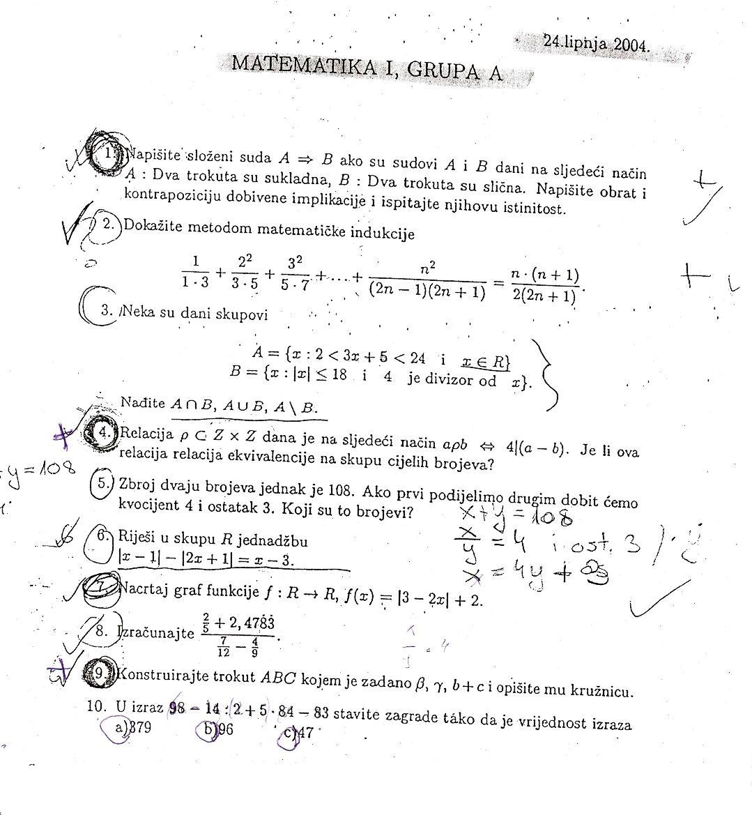[quote="brla"]Evo riješio sam drugi zadatak (riješenje je da jednakost ne vrijedi za sve n brojeve), deseti koji nije problematičan i peti zadatak (riješenje sam dobio x=87 , y=21) valjda je točno.