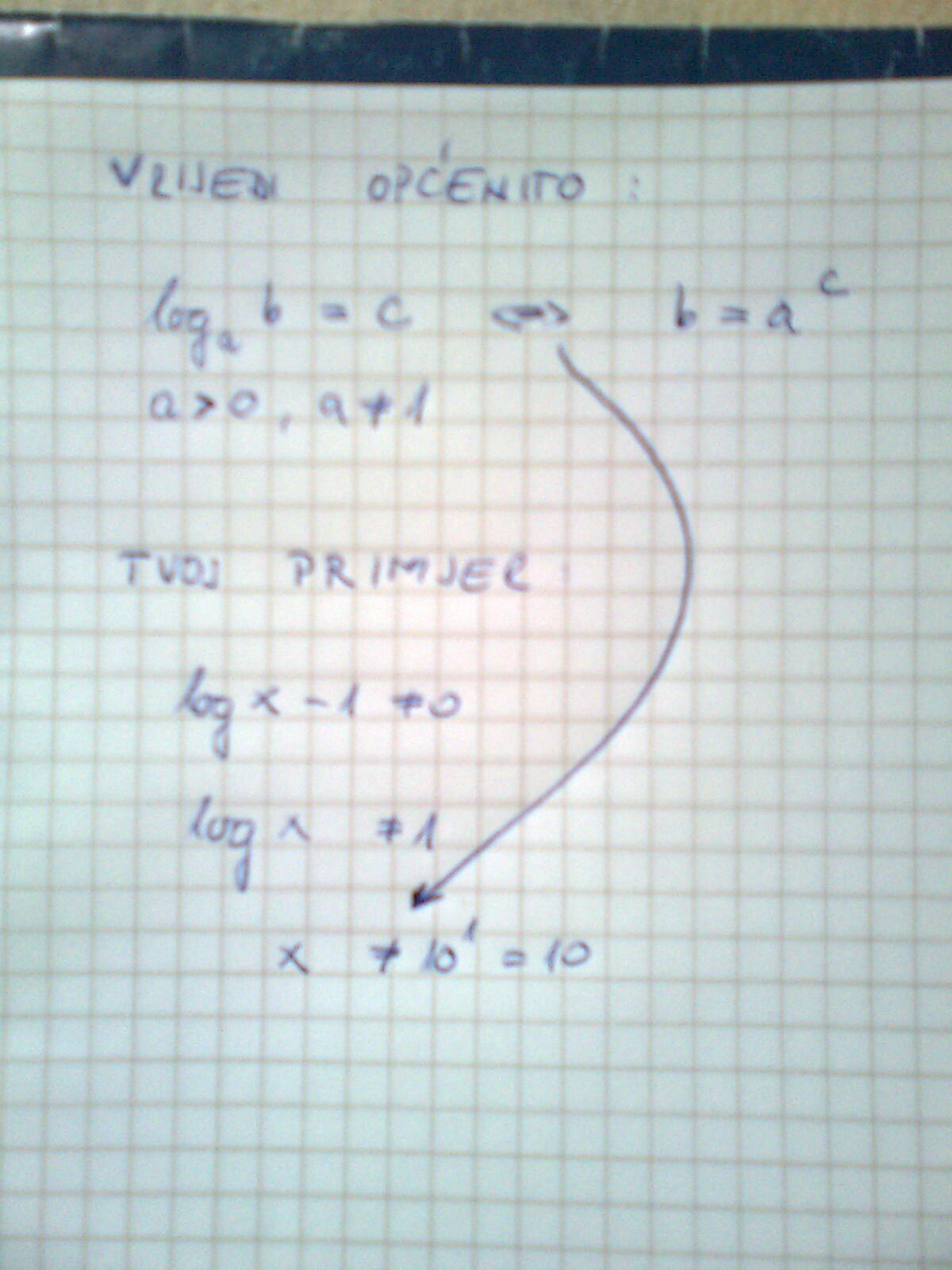 Čista definija logaritma! Wink Naime, log(x) nije ništa drugo nego logaritam od x po bazi 10! Ovdje je dogovor da, ako ništa nije rečeno, da je baza 10! Wink