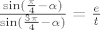 Iz [latex]\triangle MDC[/latex] citamo [latex]\frac{\sin({\frac{\pi}{4}-\alpha})}{\sin({\frac{3\pi}{4}-\alpha})}=\frac{e}{t}[/latex].