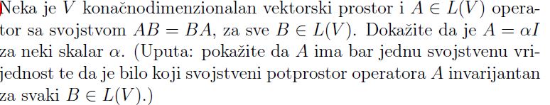 Za prvi zadatak prolistaj temu [url]http://degiorgi.math.hr/forum/viewtopic.php?t=18045&postdays=0&postorder=asc&&start=0[/url], a za drugi [url]http://degiorgi.math.hr/forum/viewtopic.php?p=117628&highlight=bar+jednu+svojstvenu+vrijednost#117628[/url].
