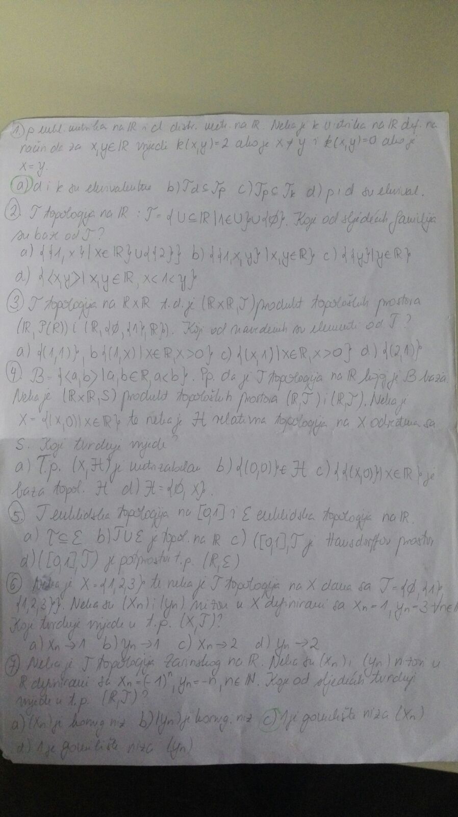 EDIT: U obrazloženju 10.b) zadatka imam tipfeler, treba pisati "to je puno jače svojstvo od neHausdorffovosti". Malo sam šlampavo to napisala, ali mislim da se kuži što sam htjela reći.