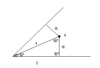 "Ugao diedra je 60°. Ako je tacka A jednako udaljena od strana diedra i to rastojanje iznosi m, odredi udaljenost tacke A od ivice diedra. Nacrtaj sliku!"
