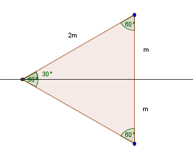 Dakle, u pitanju je osmi razred, jos nisu radili trigonometriju, djevojcica je pokusala pomocu pravouglog trougla (zbira uglova u trouglu) i dobila je rjesenje da je udaljenost jednaka m/3