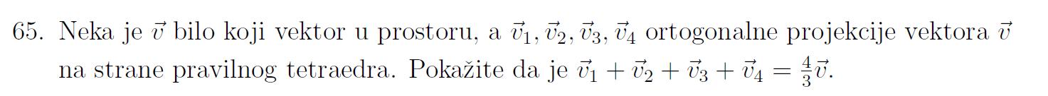 u prostoru je zadan vektor v i njegove ortogonalne projekcije na strane pravilnog tetraedra v1, v2, v3, v4. Treba pokazati da je 4/3 v=v1+v2+v3+v4