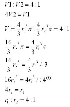 [latex]\frac41 = \frac{V_1}{V_2} = \frac{\frac{4\pi{}r_1^3}3}{\frac{4\pi{}r_2^3}3} = \left(\frac{r_1}{r_2}\right)^3[/latex],