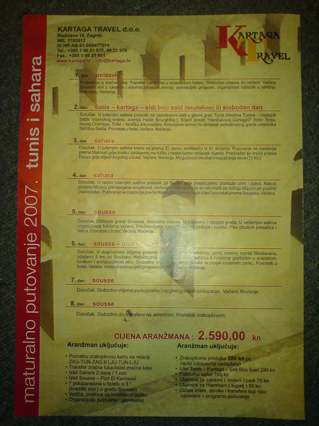 Radan i ja smo poslije sastanka otišli do agencije Kartaga Travel ispitati još neke stvari: