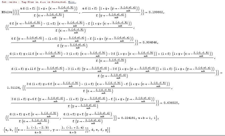 Not quite. Desavalo mi se da pogrijesi i kod simbolickog rjesavanja jednadzbi (kaze da nema rjesenja a ima ih). NSolve radi numericki i sasvim sigurno ga se moze natjerati da pogrijesi. Ne tvrdim da u ovom konkretnom slucaju ima rjesenja  |